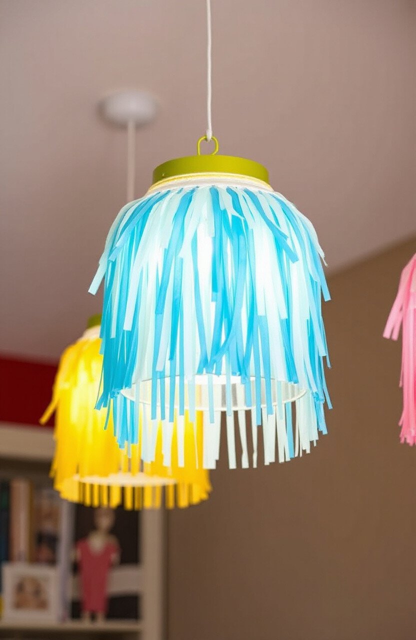 Use tissue paper or fabric for the fringe. Choose bright colors for a festive look. They’re easy to make and add a playful touch to any space.
