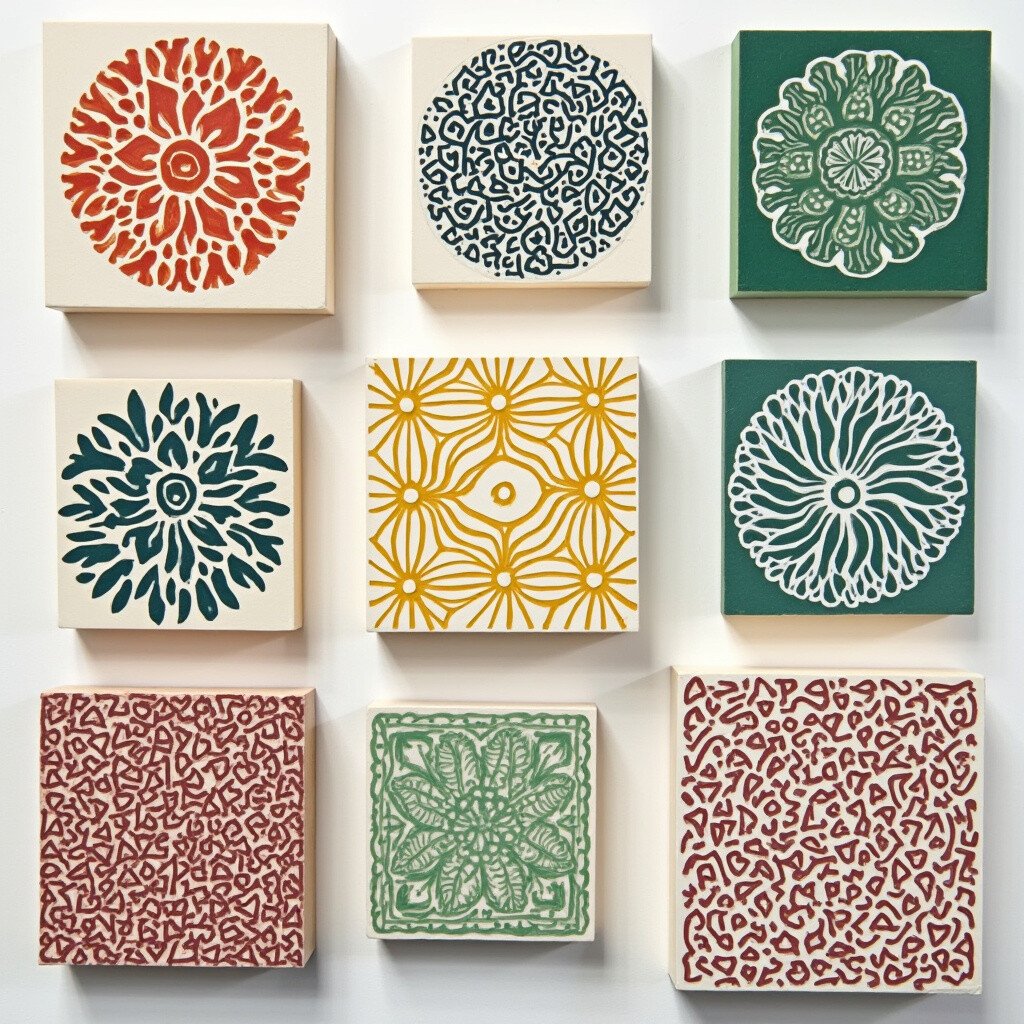 Linoleum blocks are essential for block printing. These soft, easy-to-carve surfaces allow you to create intricate designs by cutting away the negative space. It’s like sculpting your own stamp!