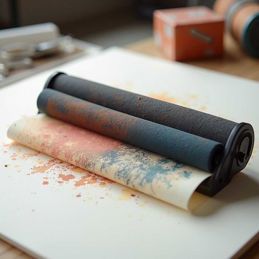 Rollers come in various sizes and materials, with rubber being the most common. Prices range from $5 to $15, making them a practical addition to your printmaking toolkit.