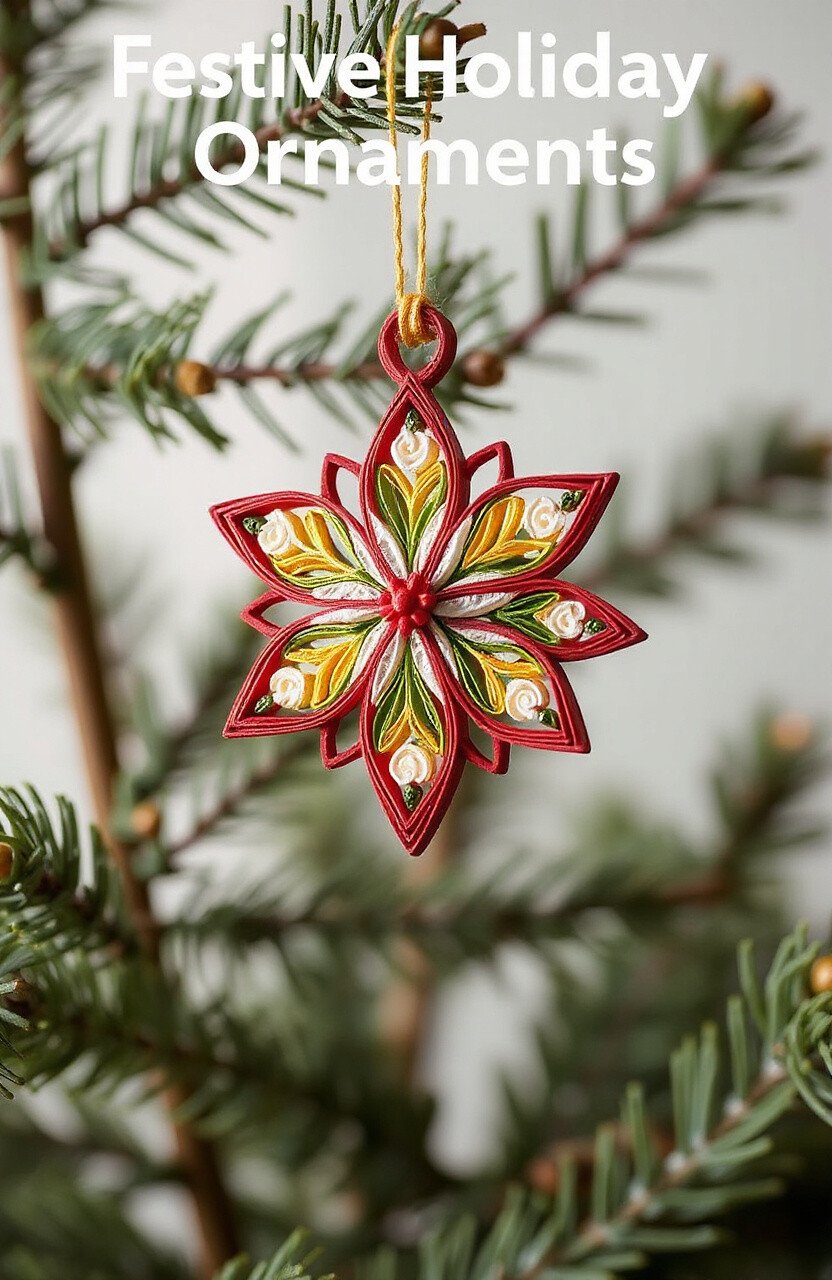 Add a handmade touch to your holiday decorations with quilled ornaments. They can be as simple or as detailed as you like. Snowflakes, stars, and bells are popular choices.