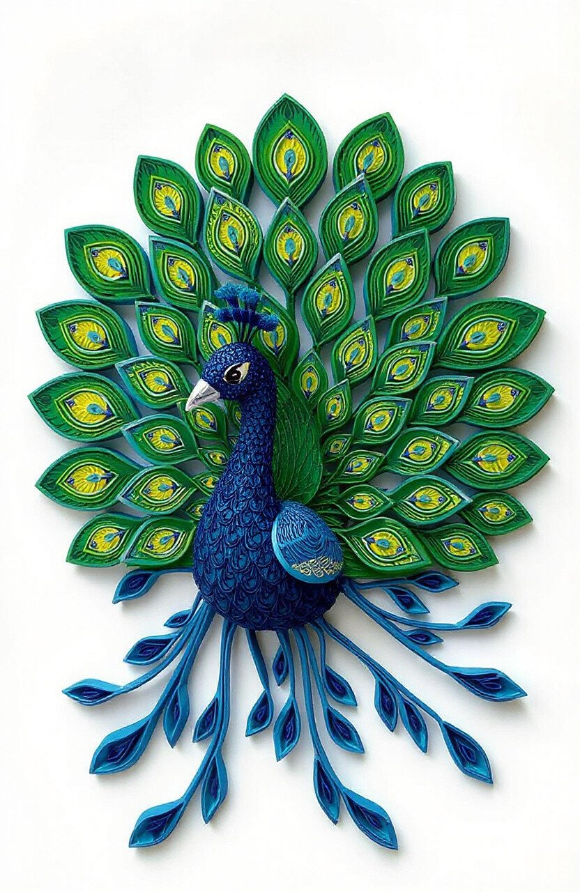 Peacocks are known for their stunning beauty and vibrant colors. Capture this elegance with quilling.