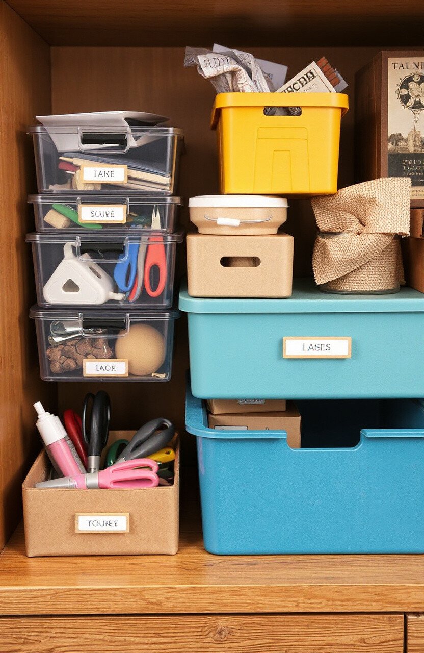 Keep your supplies organized with storage boxes. They come in different sizes and styles.