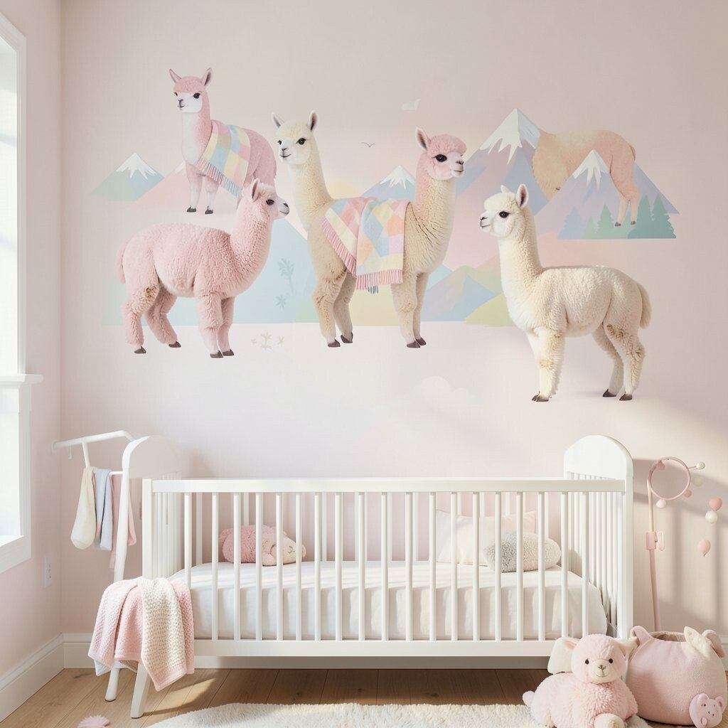 Llamas in soothing pastels bring a quirky charm to any nursery. Their fluffy coats and curious expressions are sure to be a hit with little ones.