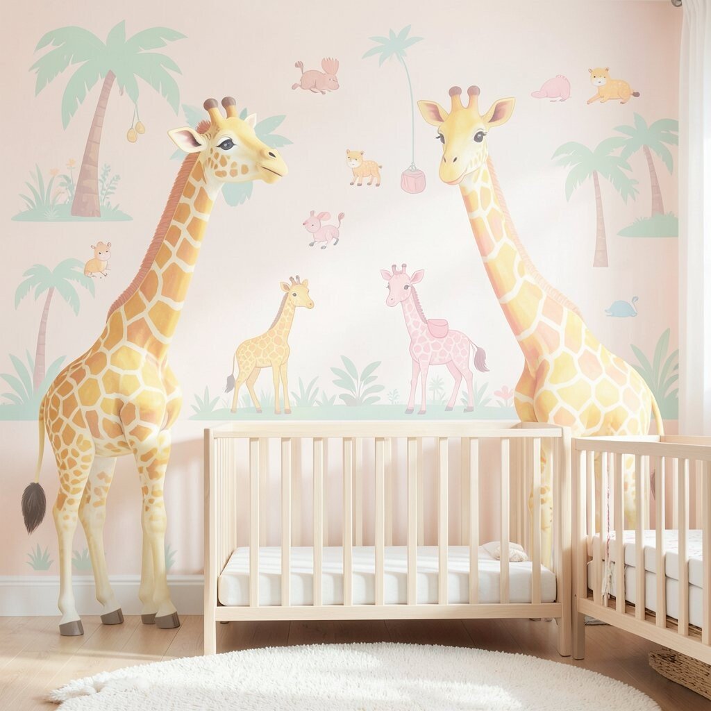Pastel giraffes, with their long necks and gentle eyes, can inspire a world of wonder. Opt for soft yellows and pinks to keep the space light and airy.