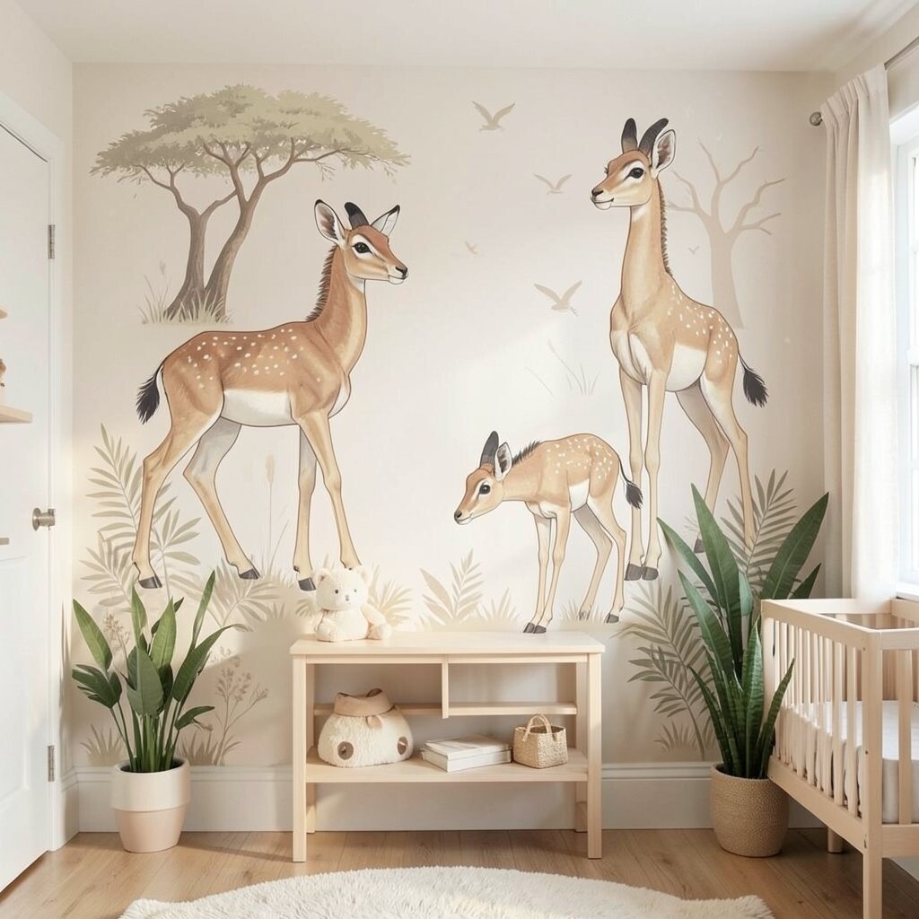 Gazelles in soft browns and creams can add a touch of elegance to your nursery. Their sleek forms and gentle eyes are captivating.