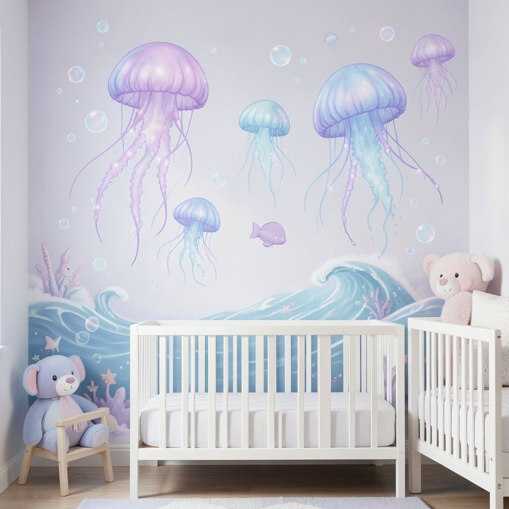Jellyfish in soft purples and blues can bring a magical underwater feel to your nursery. Their flowing forms and gentle movements are mesmerizing.