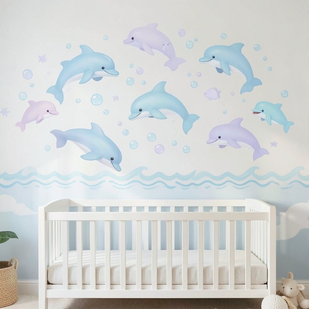 Dolphins in soft blues and lilacs can make a splash in your nursery. Their playful nature is contagious and perfect for creating a sea-themed wonderland.