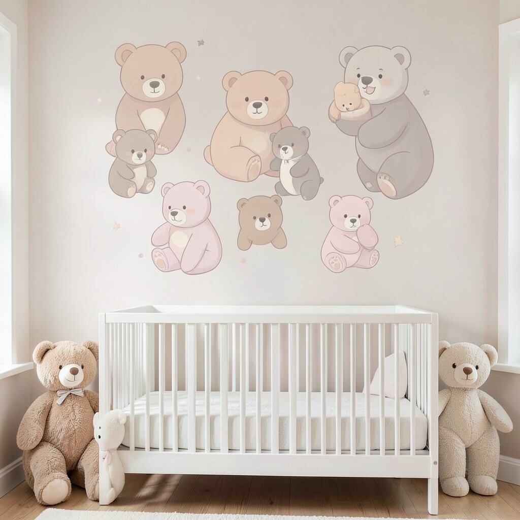 Bears in soft pastels like blush and taupe can make a nursery feel cozy and warm. Their cuddly appearance is simply irresistible.
