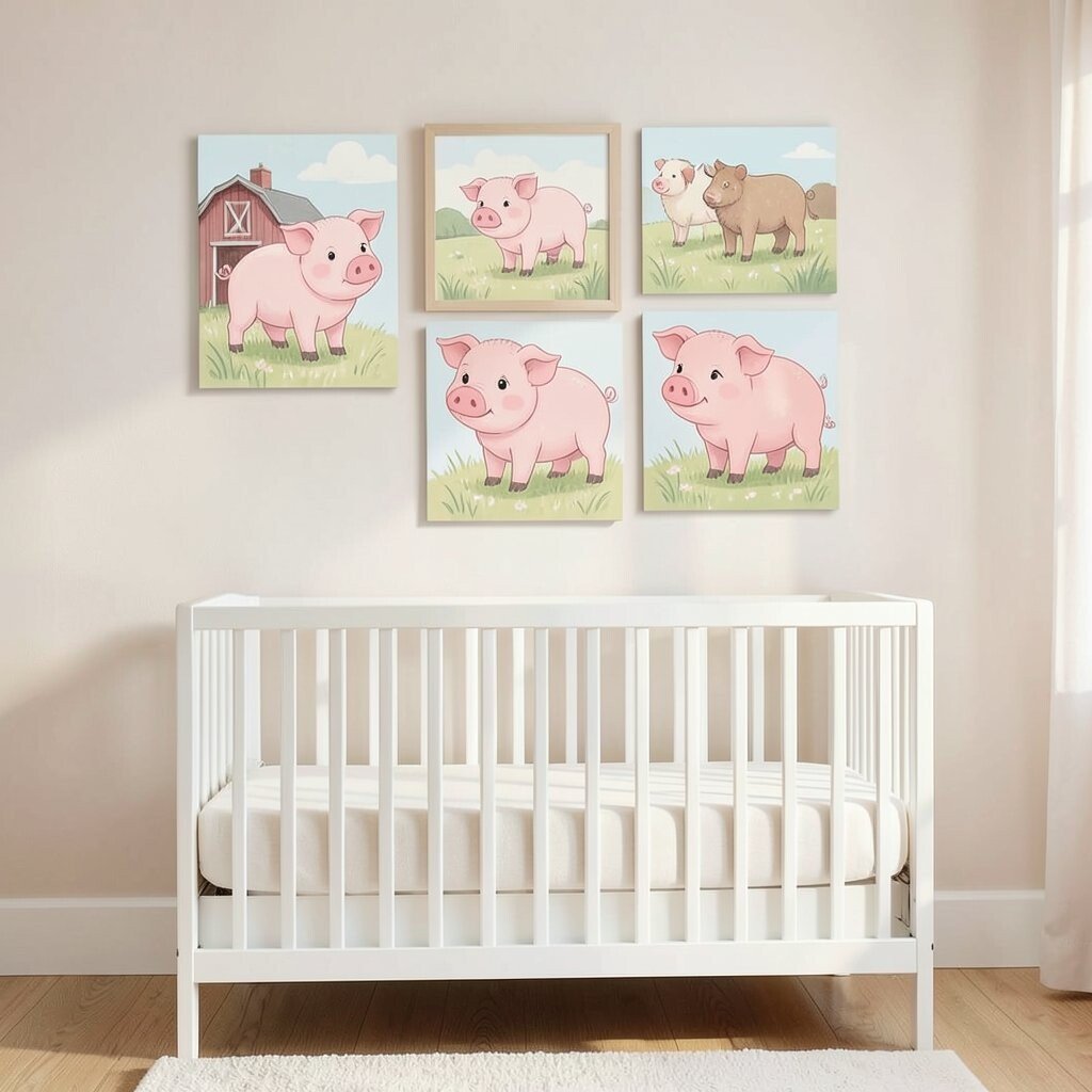 Pigs in pastel pinks and creams can add a farm-fresh touch to your nursery. Their round snouts and curly tails are irresistibly cute.