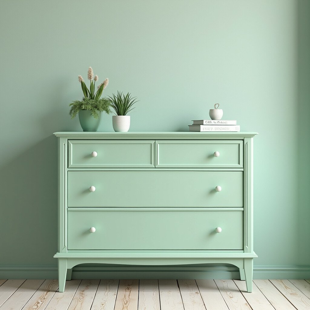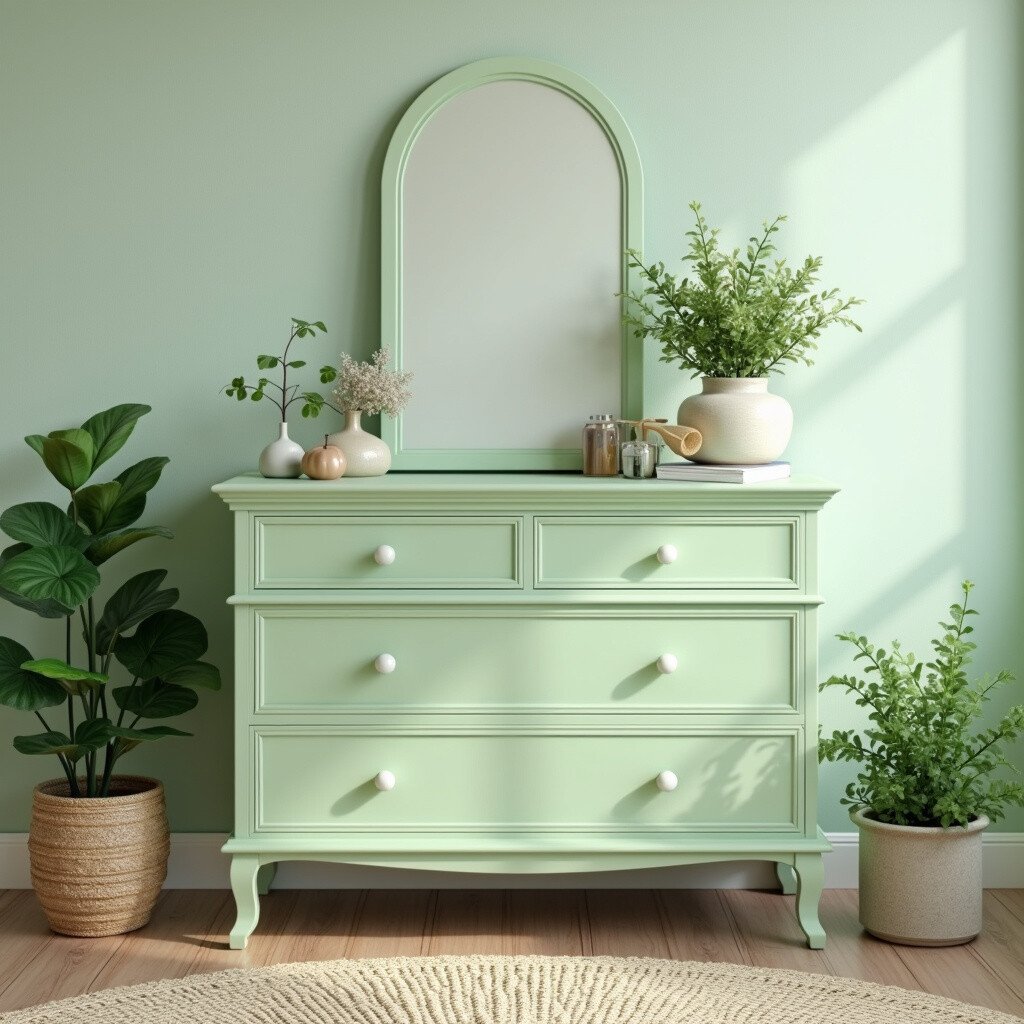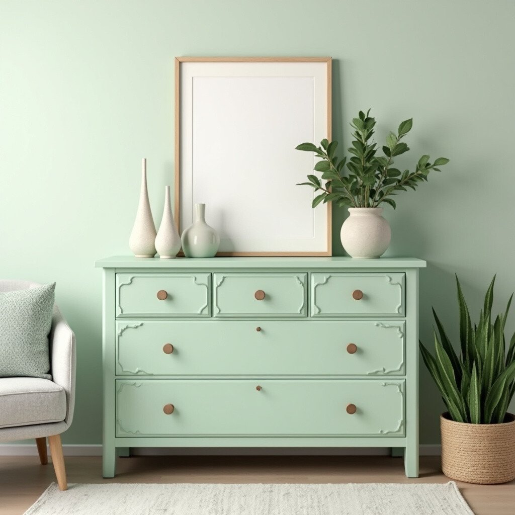 Pair it with dark wood or white for a balanced look. Pistachio paint is available in many stores, and you might find it on sale. Add some plant-themed decor for a natural touch!