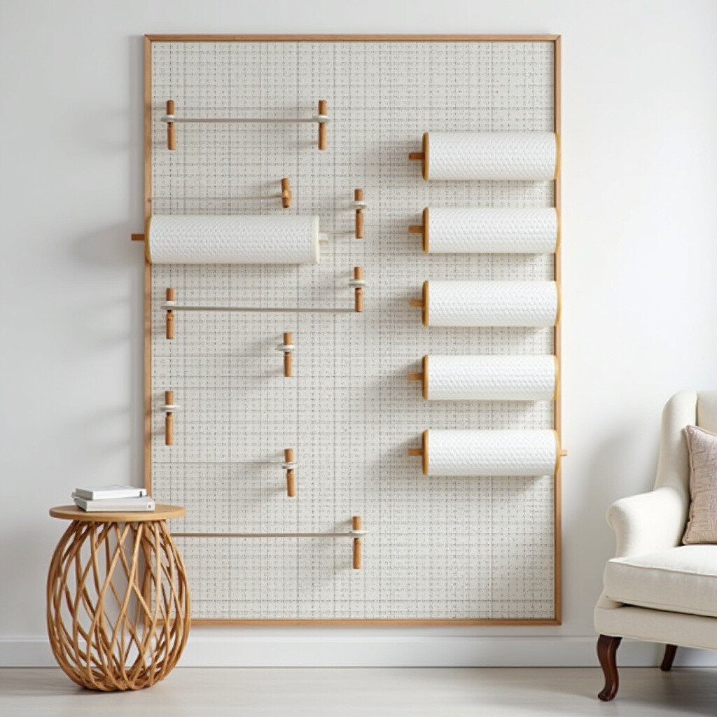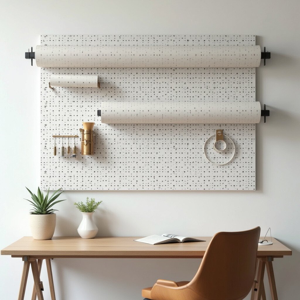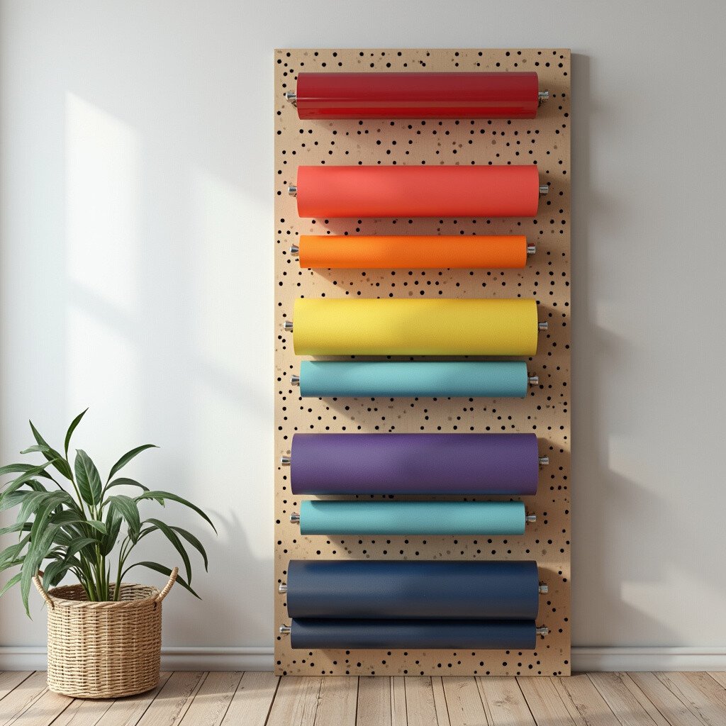 Imagine a pegboard standing tall, decorated with vibrant vinyl rolls. This vertical setup saves space and looks fantastic.