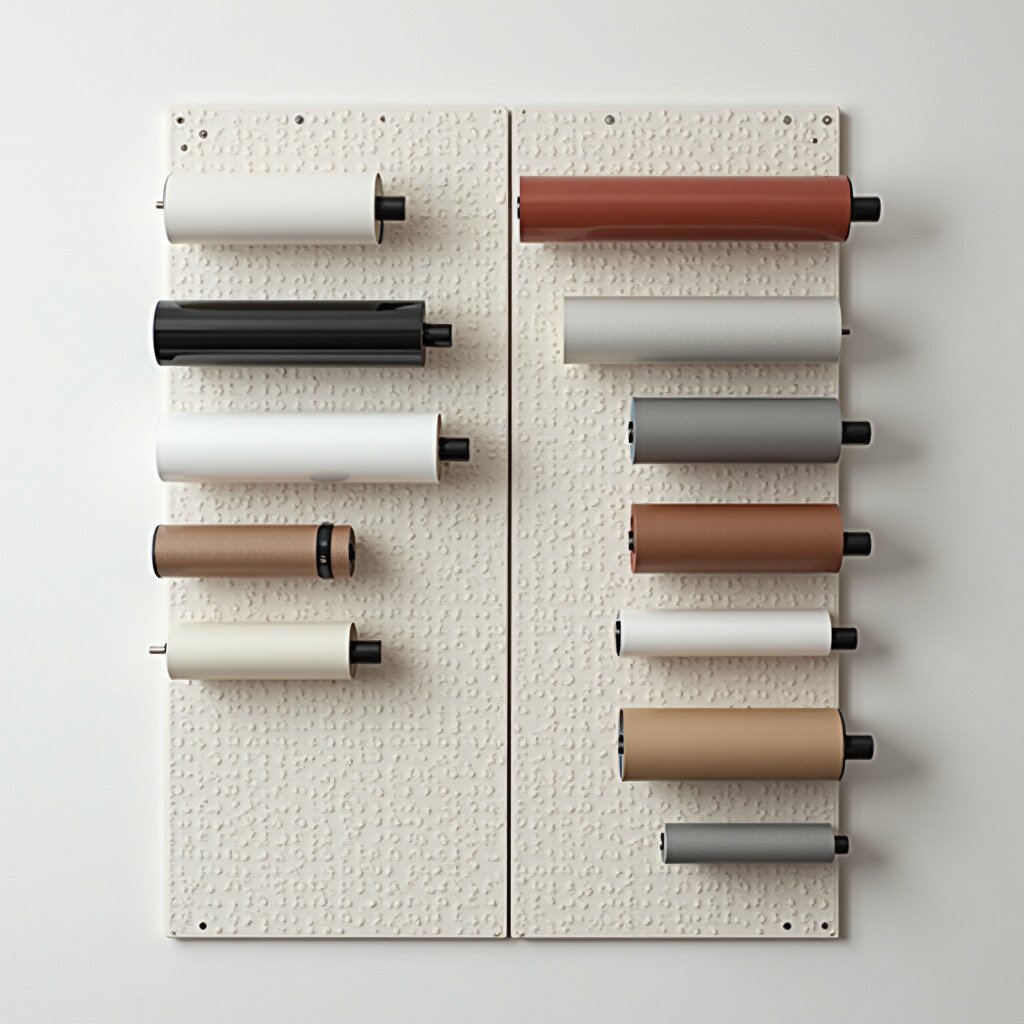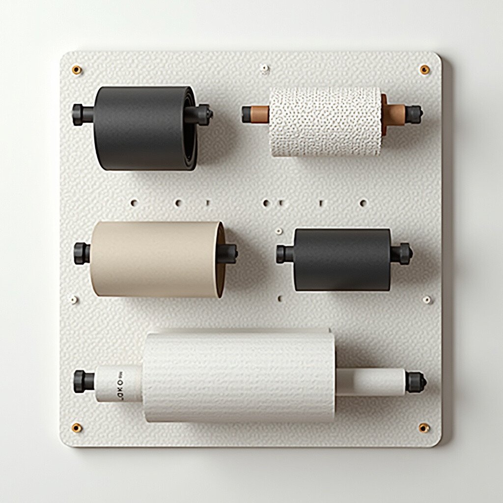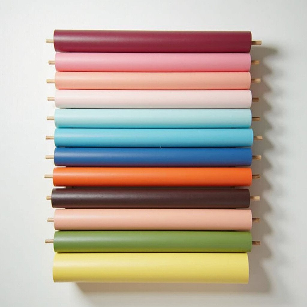 Imagine a pegboard standing tall, decorated with vibrant vinyl rolls. This vertical setup saves space and looks fantastic.