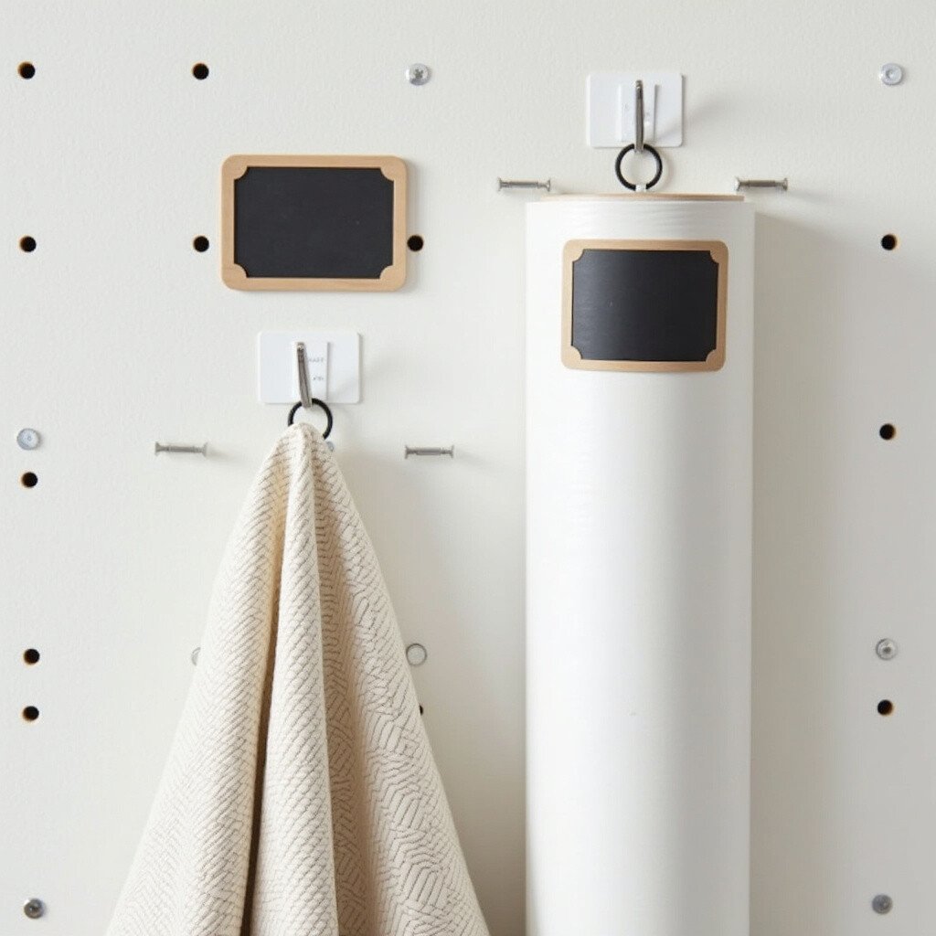 Personalize it by using different hook colors or adding labels. This setup is both functional and fancy, turning your wall into a mini art gallery.