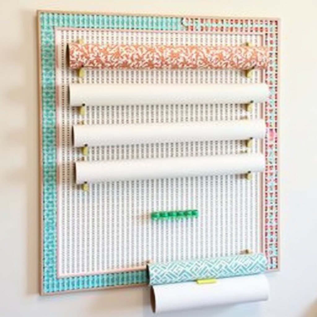 For a minimalist approach, stack vinyl rolls vertically one above the other using long pegs. This method saves space and keeps your pegboard looking clean and uncluttered. It’s ideal for small craft rooms.