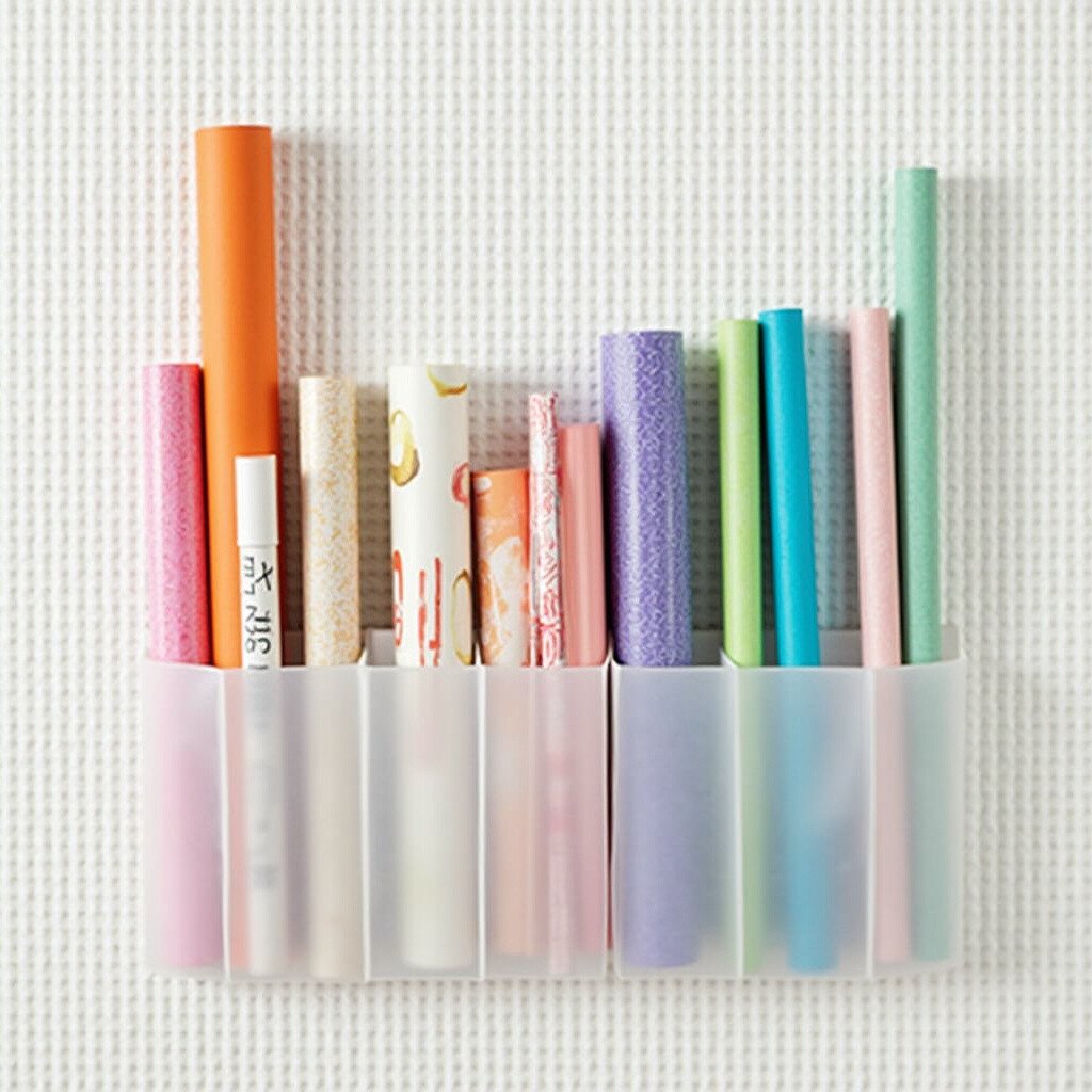 Pockets can be made from inexpensive clear plastic or repurposed from old plastic files. They add a sleek and modern look to your craft space. You can even decorate the pockets with washi tape for a personalized touch.
