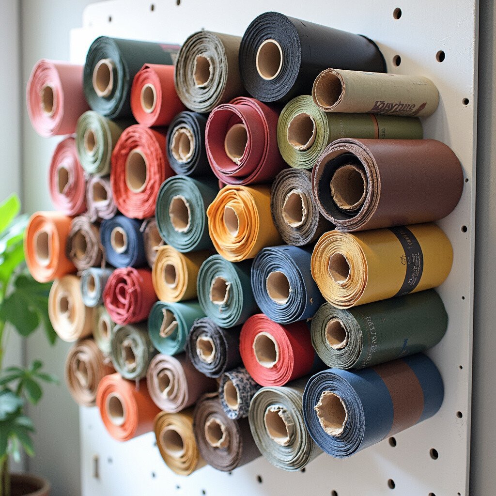 Arrange your rolls in a spiral pattern on the pegboard for an eye-catching display. This unique arrangement turns your vinyl storage into an art piece. It’s perfect for those who love a bit of whimsy in their decor.