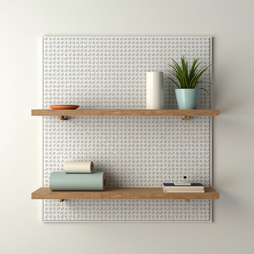 Install small floating shelves on your pegboard to hold vinyl rolls. This method adds depth and dimension to your wall, creating a layered effect. It’s perfect for those who love a bit of 3D art in their space.