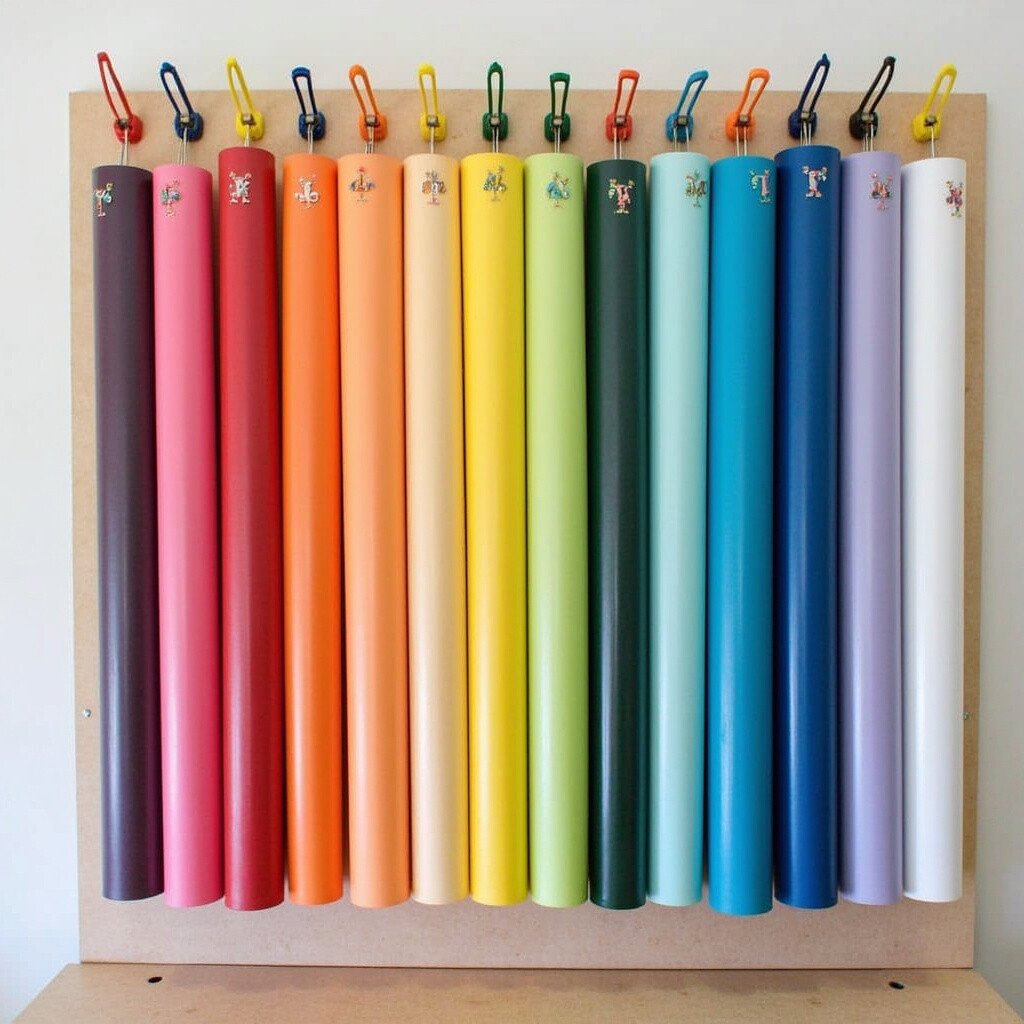 Choose bright or pastel rolls for a different vibe. Label each section with color names using small stickers for an added touch of personalization. This method is budget-friendly, especially if you already have an assortment of vinyl colors.