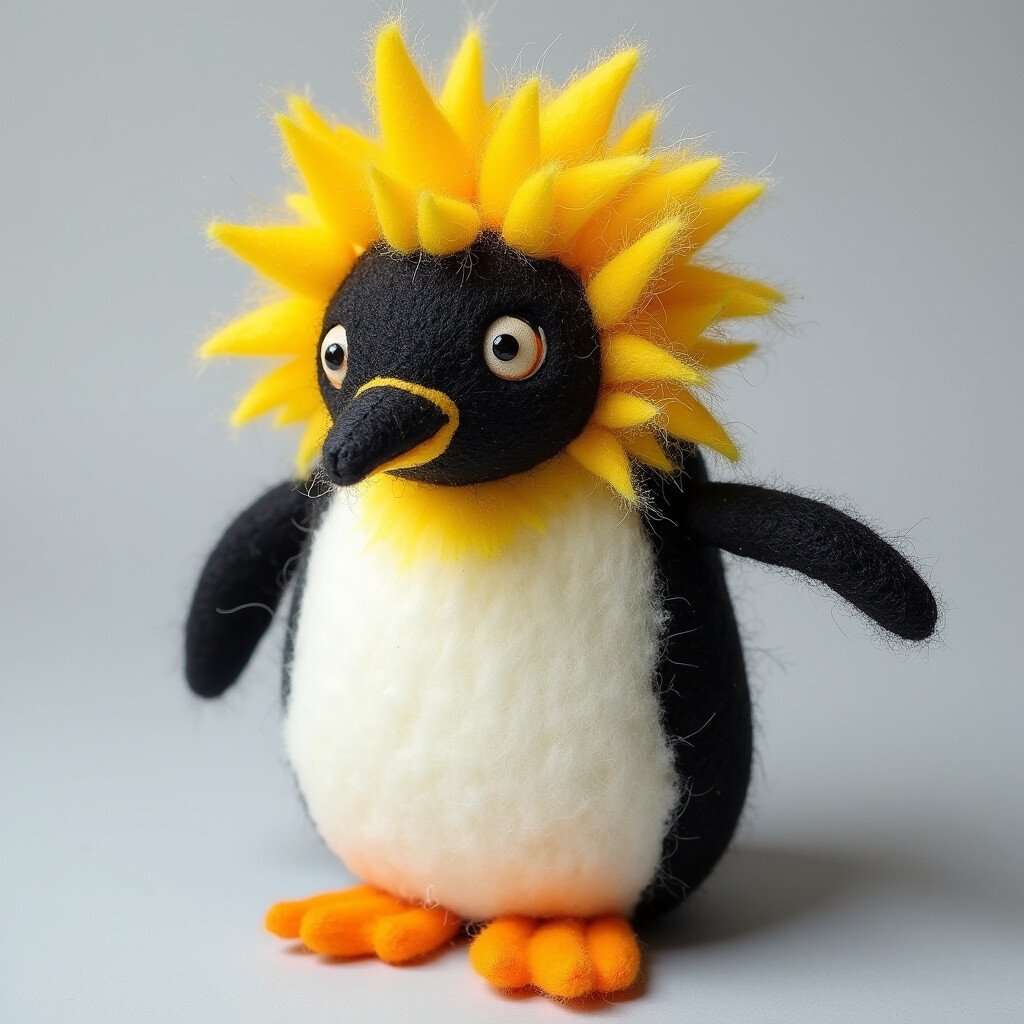Use bright yellow wool for the hair and a mix of black and white for the body. It’s a fun way to experiment with textures and colors. The spiky hair offers a unique touch that turns heads.