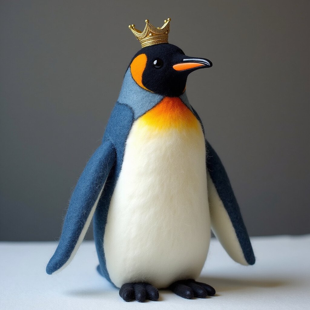 Use luxurious wool shades like deep blues and whites. The result is a stunningly regal penguin that demands attention. Add a small crown for a royal finish.