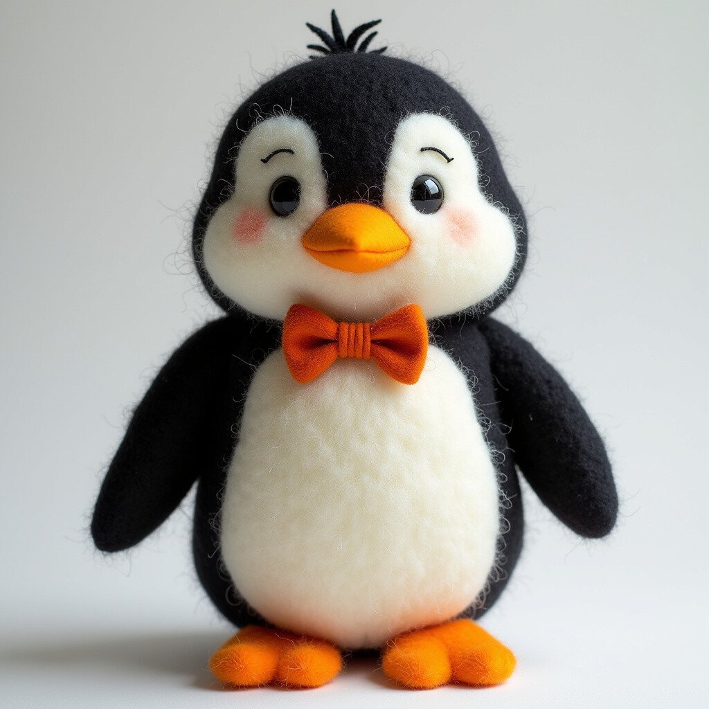 The classic tuxedo penguin is a timeless choice. Its black and white attire is elegant and easy to craft with basic wool colors. This simplicity brings out a sophisticated charm.