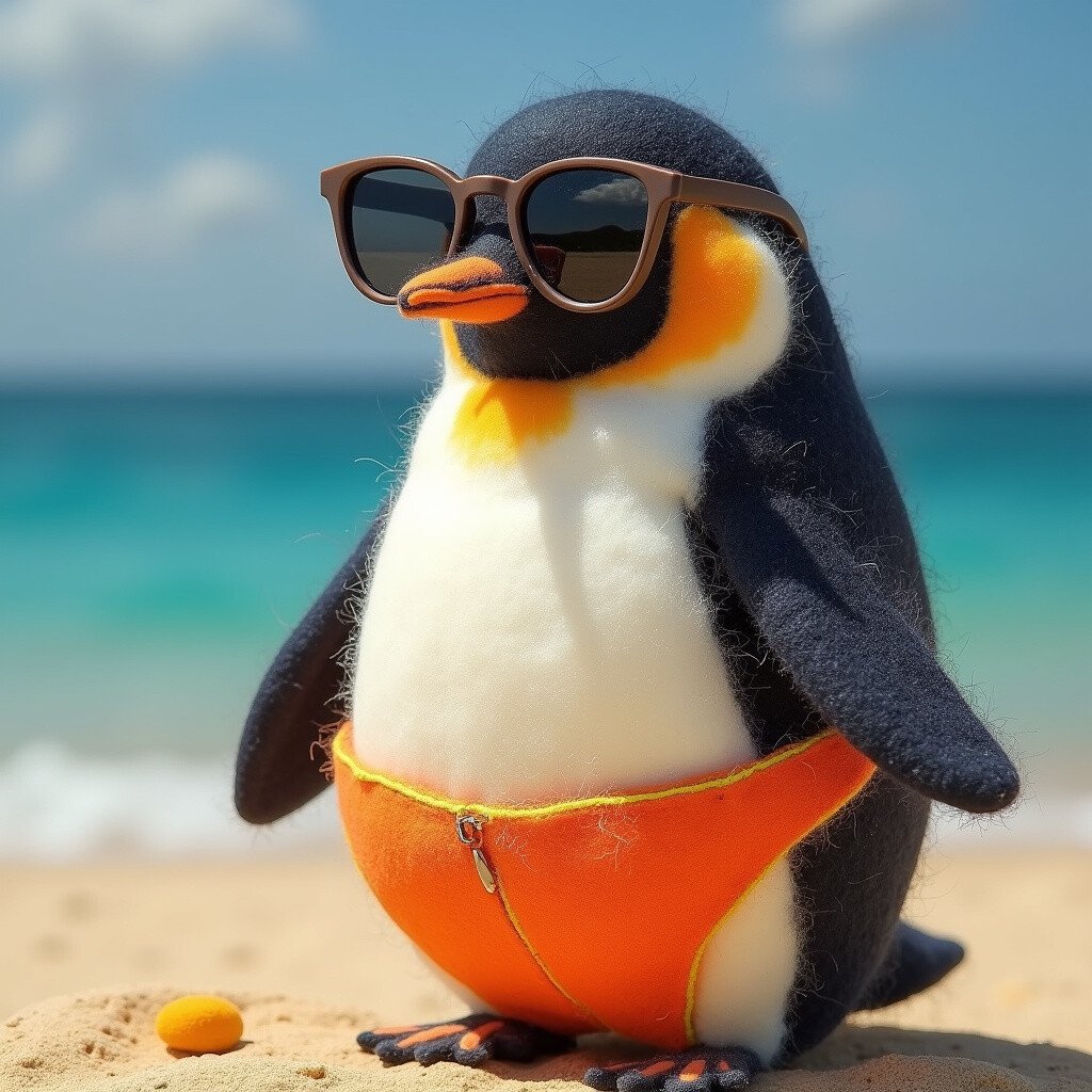 Bring summer vibes with a beach penguin donning stylish sunglasses. This relaxed character is ready to bask in the sunlight.