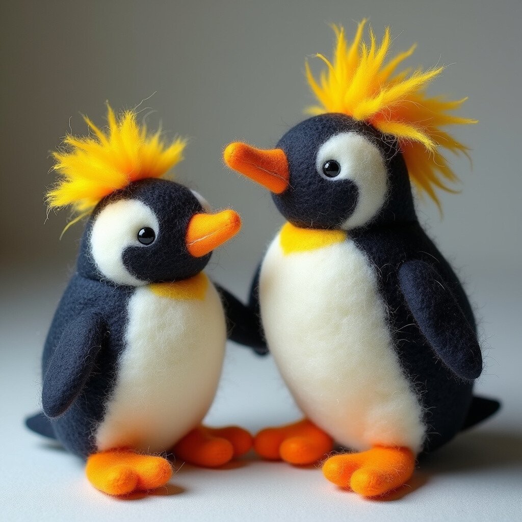 Rockhopper Penguins are known for their distinctive yellow crests and spunky attitude. Capturing their playful spirit in felt can be immensely satisfying. These penguins are smaller, making them a quicker, fun project.