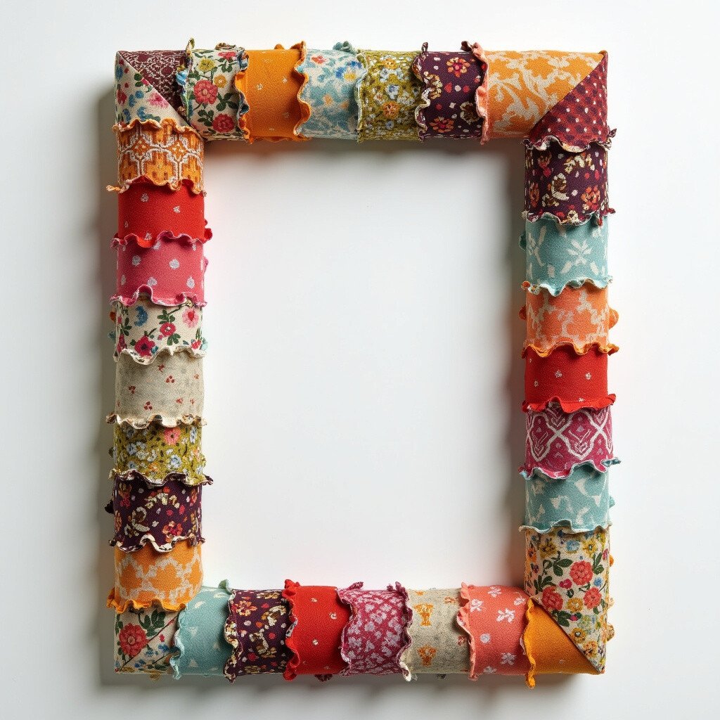 Transform a plain frame with colorful fabric scraps. Choose patterns that complement your home decor. This idea is perfect for using leftover fabric from other projects.