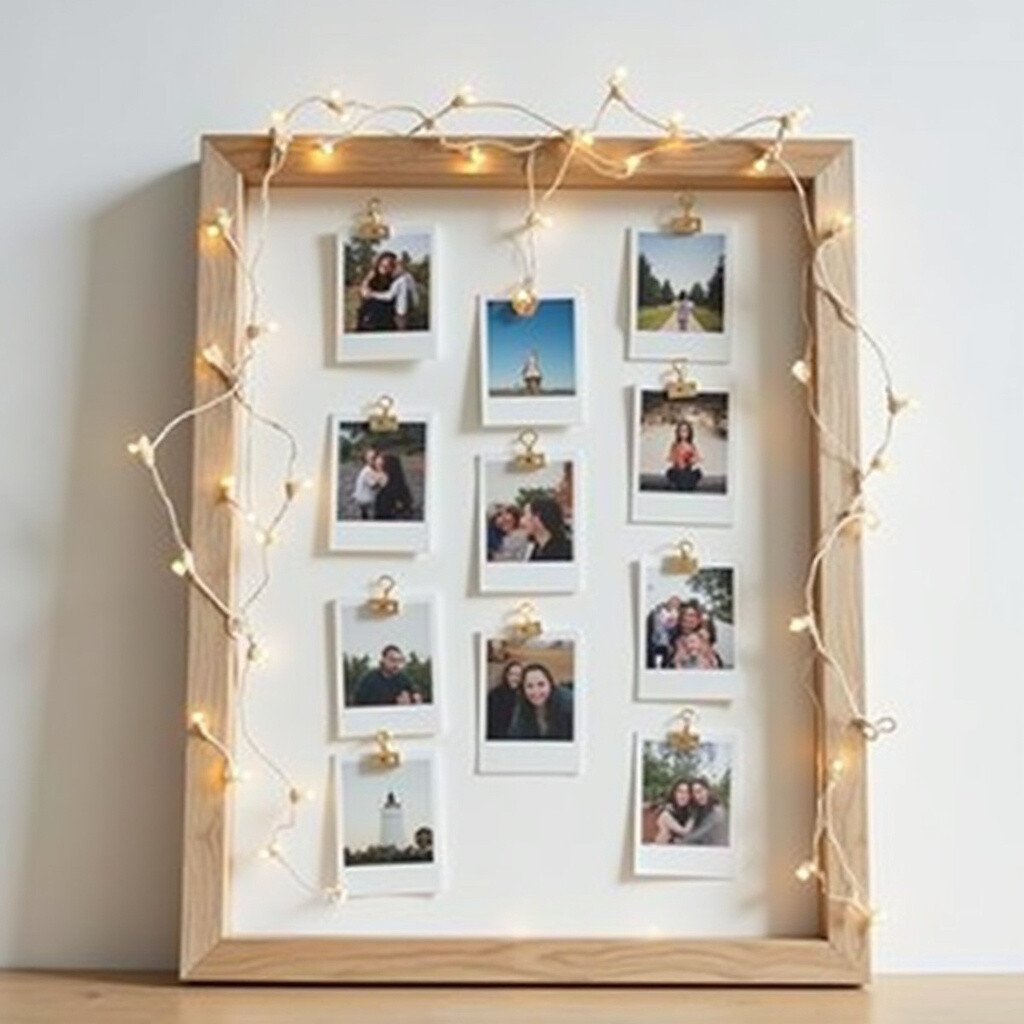 This idea is great for showcasing a collection of moments. You can easily switch out photos whenever you like. Personalize it by adding tiny fairy lights for a magical touch.