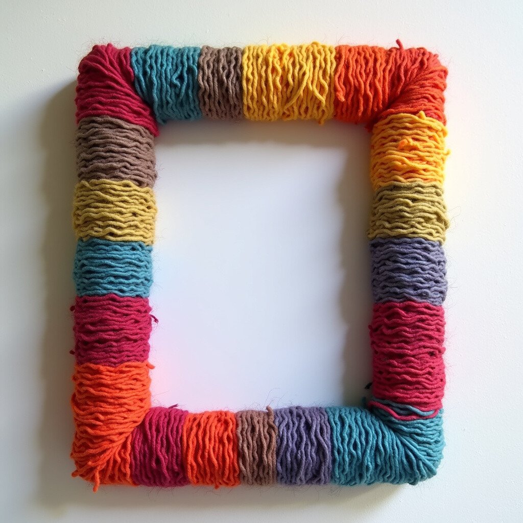 This idea is unique because it adds warmth and a homemade touch to your frames. You can personalize it by using yarn with different textures or colors. It’s perfect for adding a pop of color to any room.