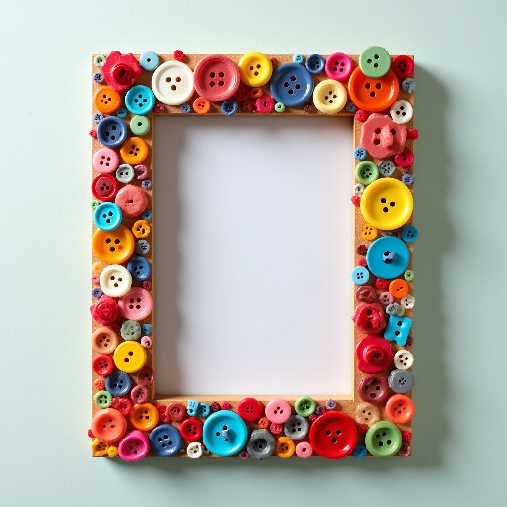 Got a jar of old buttons lying around? Turn them into a colorful photo frame! Mix and match buttons of various colors and sizes to create a vibrant, textured frame.