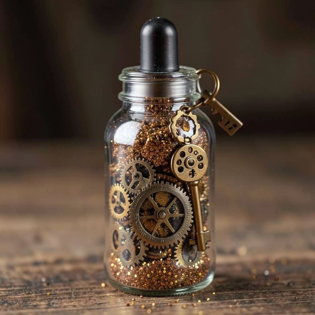 Personalize it with a small key or cog charm for an industrial touch. It’s a unique and intriguing addition to any collection. Affordable and easy to make, it’s a craft project that brings the allure of steampunk into your home.
