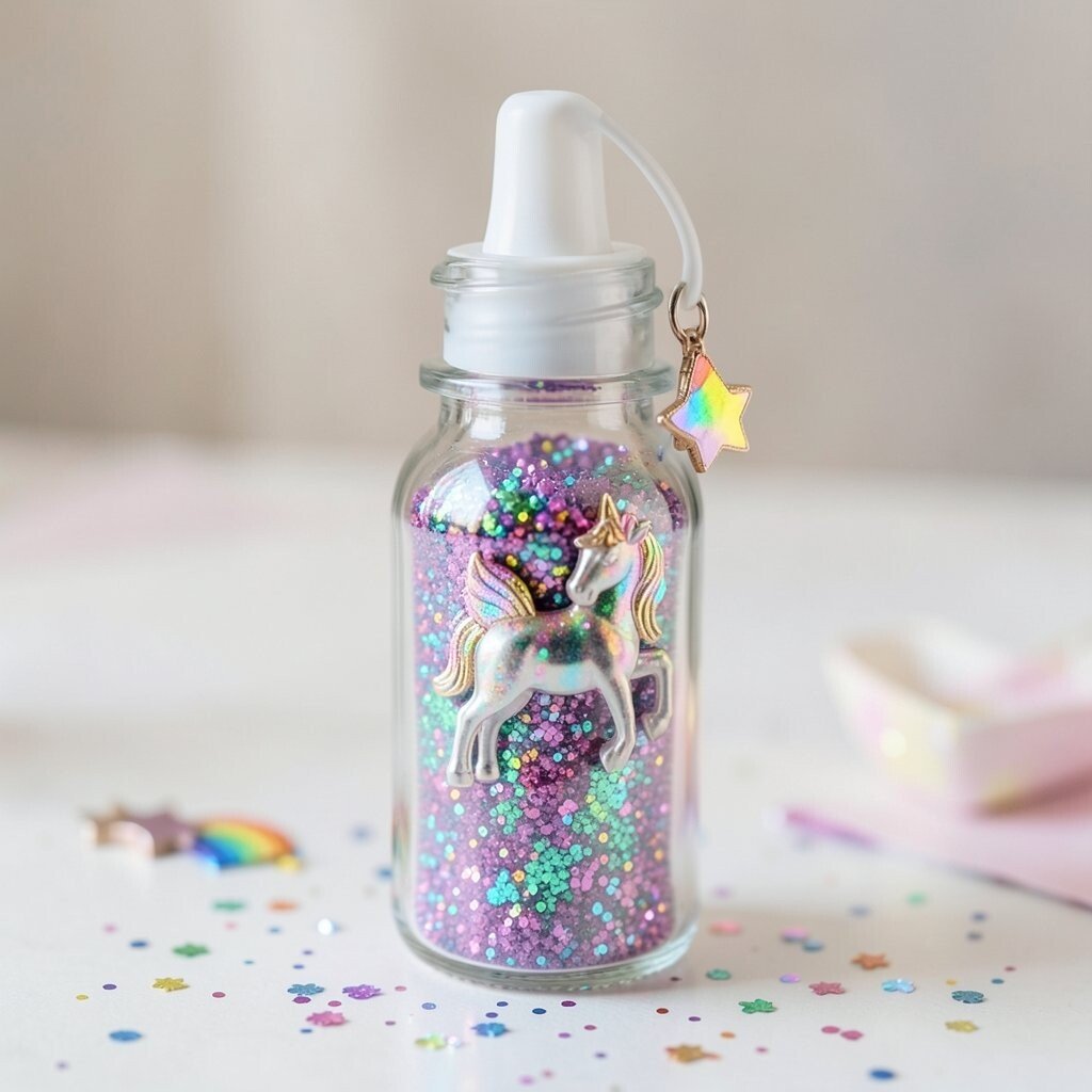 Capture the magic of unicorns with a bottle filled with rainbow glitter and a unicorn charm. It’s like having a piece of a unicorn’s world in a bottle. This bottle is perfect for unicorn lovers and fantasy enthusiasts.