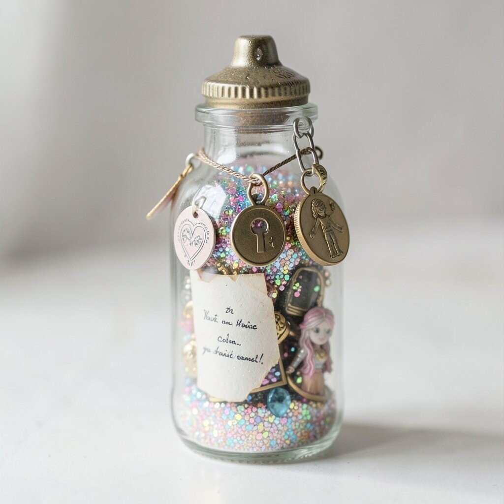 Celebrate birthdays with a bottle filled with colorful confetti and glitter. Add a tiny birthday candle charm for a festive touch. It’s a wonderful keepsake that captures the joy of birthdays.