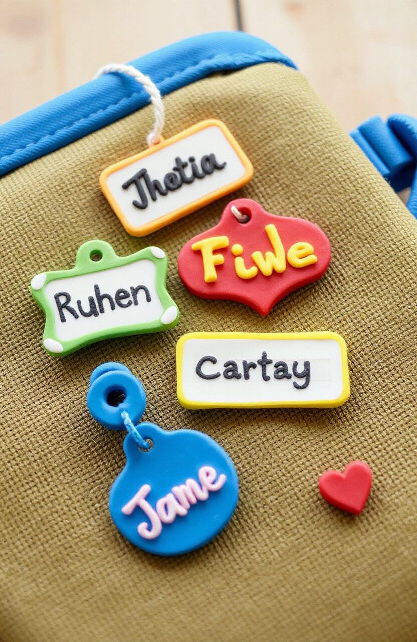 Name tags made from polymer clay are a fun way to personalize backpacks, lunch boxes, or gifts. Customize them with favorite colors and themes. These tags are practical and stylish.