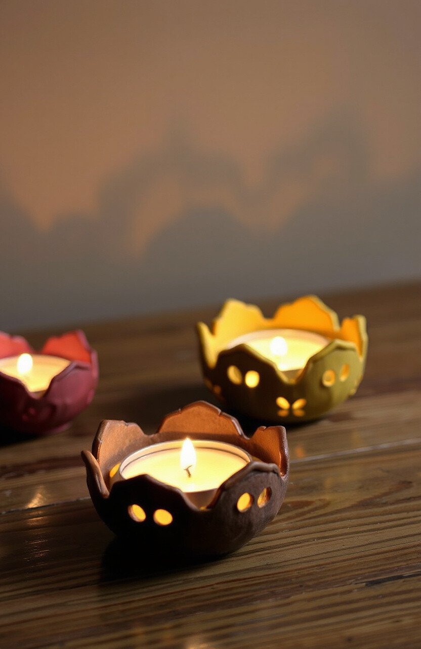 Design tea light holders that cast beautiful patterns when lit. Shape them into flowers, stars, or abstract forms. These holders add a cozy ambiance to any room.