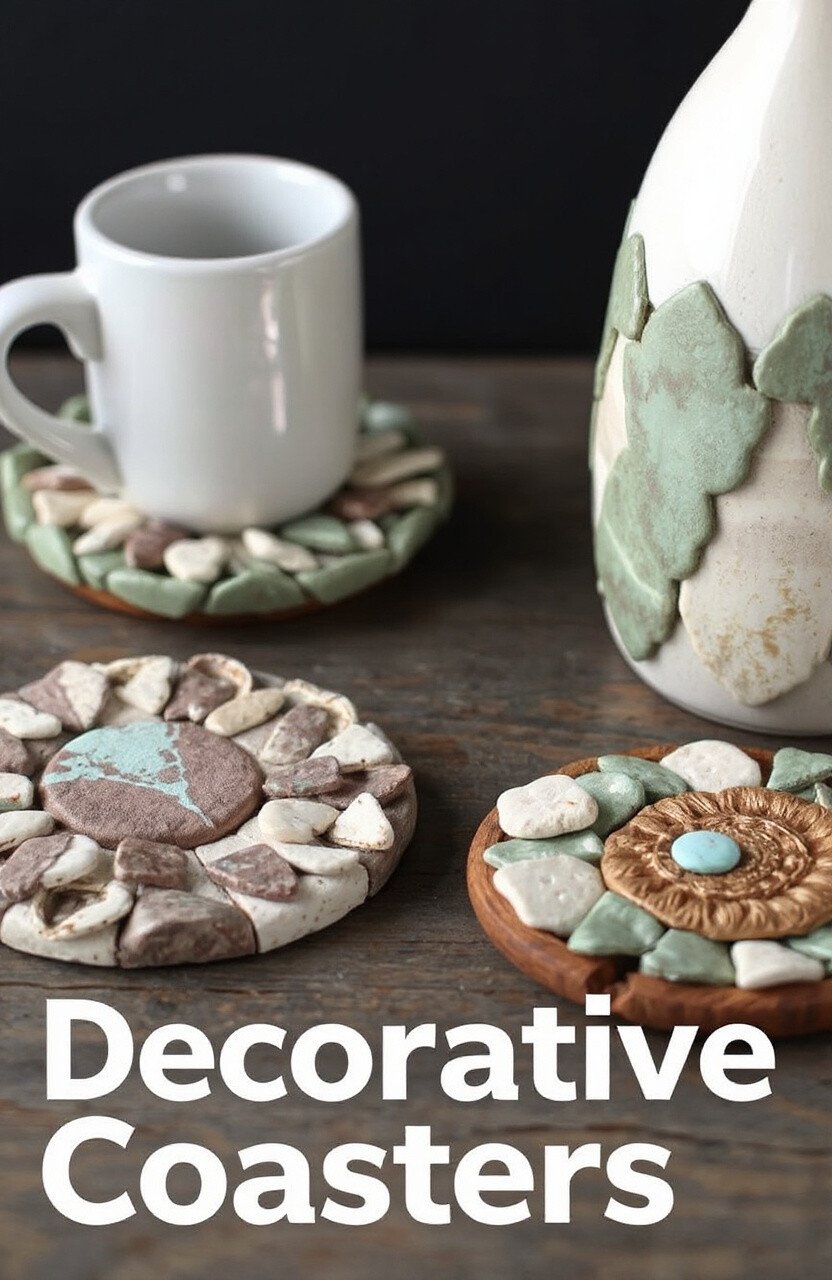 Craft decorative coasters that protect surfaces and add style to any table. Use patterns, textures, and colors that match your decor. These coasters are practical and make great gifts.