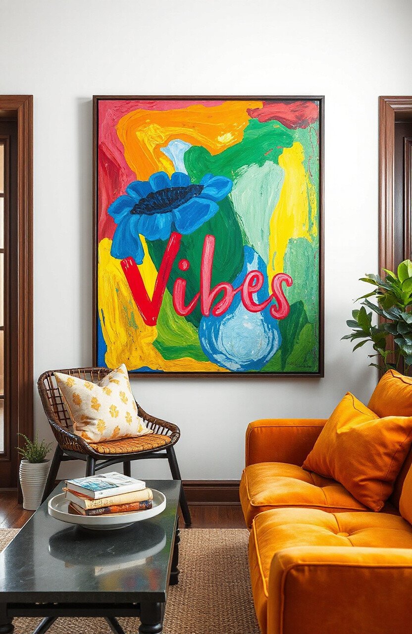 Bright colors can lift your mood and create a welcoming atmosphere. Art is a great way to express your personality.