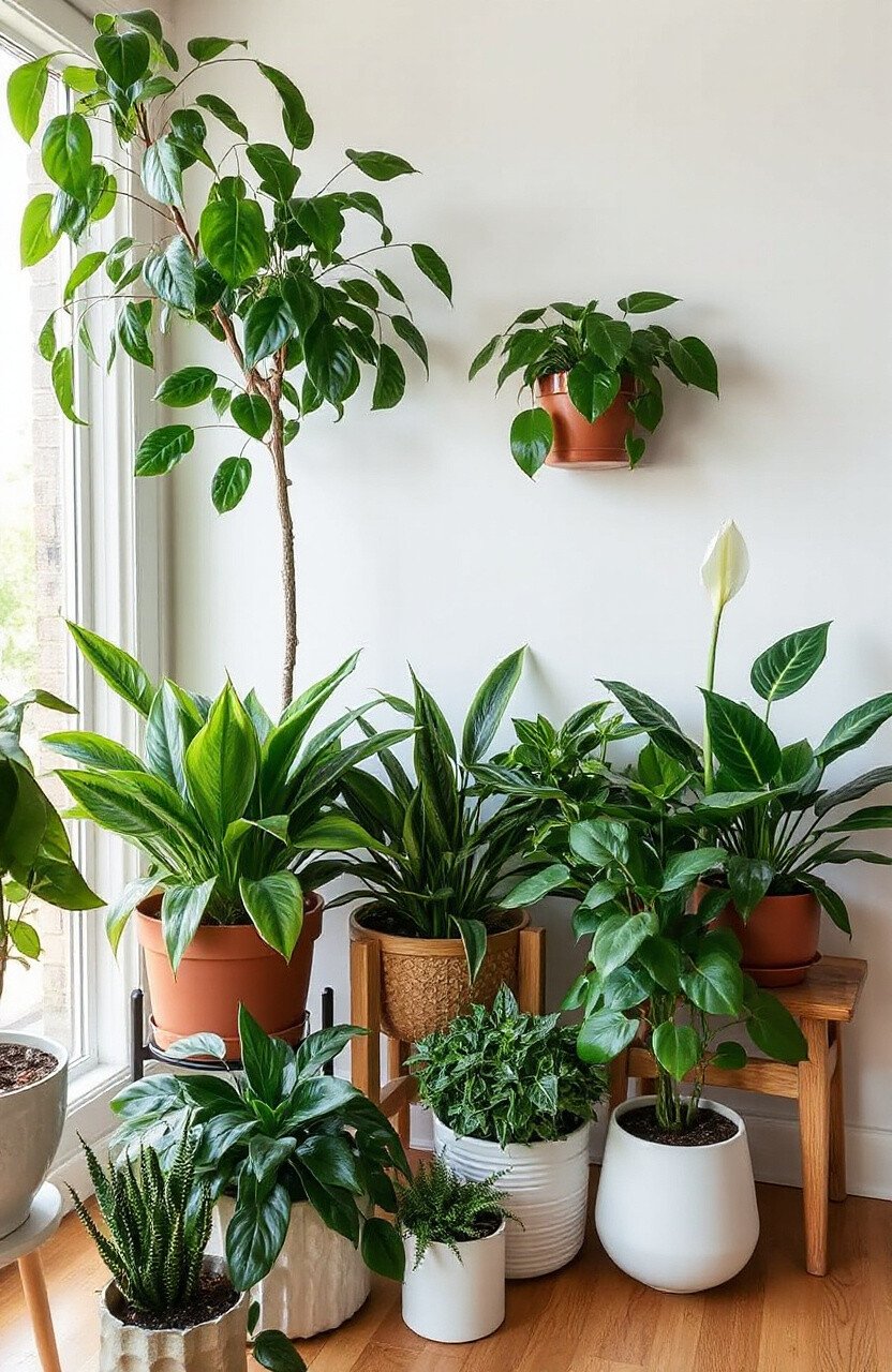 Try easy-to-care-for plants like succulents or peace lilies. They add a calm, fresh vibe to any space.