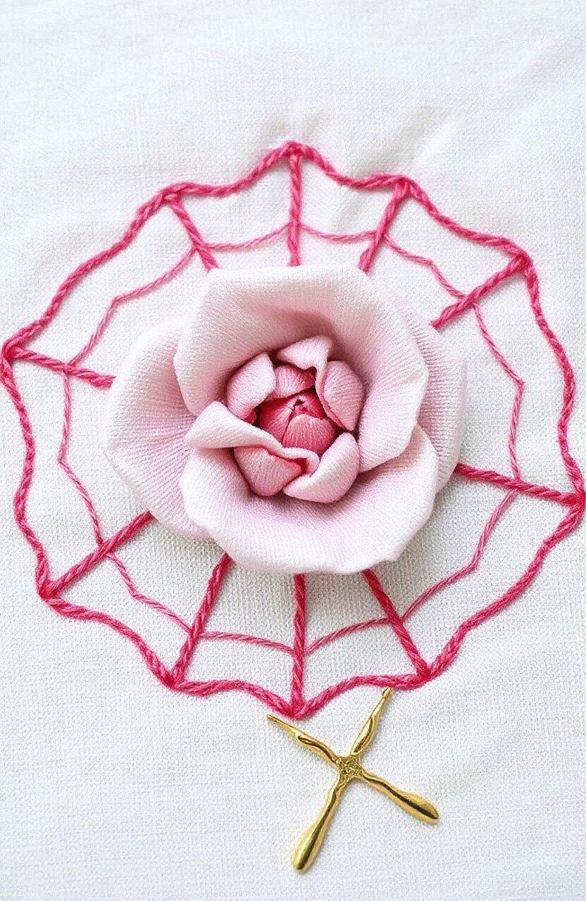 - 🧑🌾 First hand embroidery project with spider web rose from facebook.com.