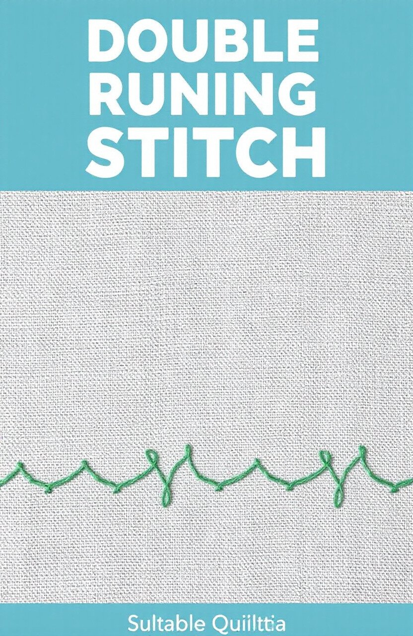 The double running stitch is like a running stitch with extra durability. It’s great for outlines and borders. This stitch gives your quilt a neat, solid look.