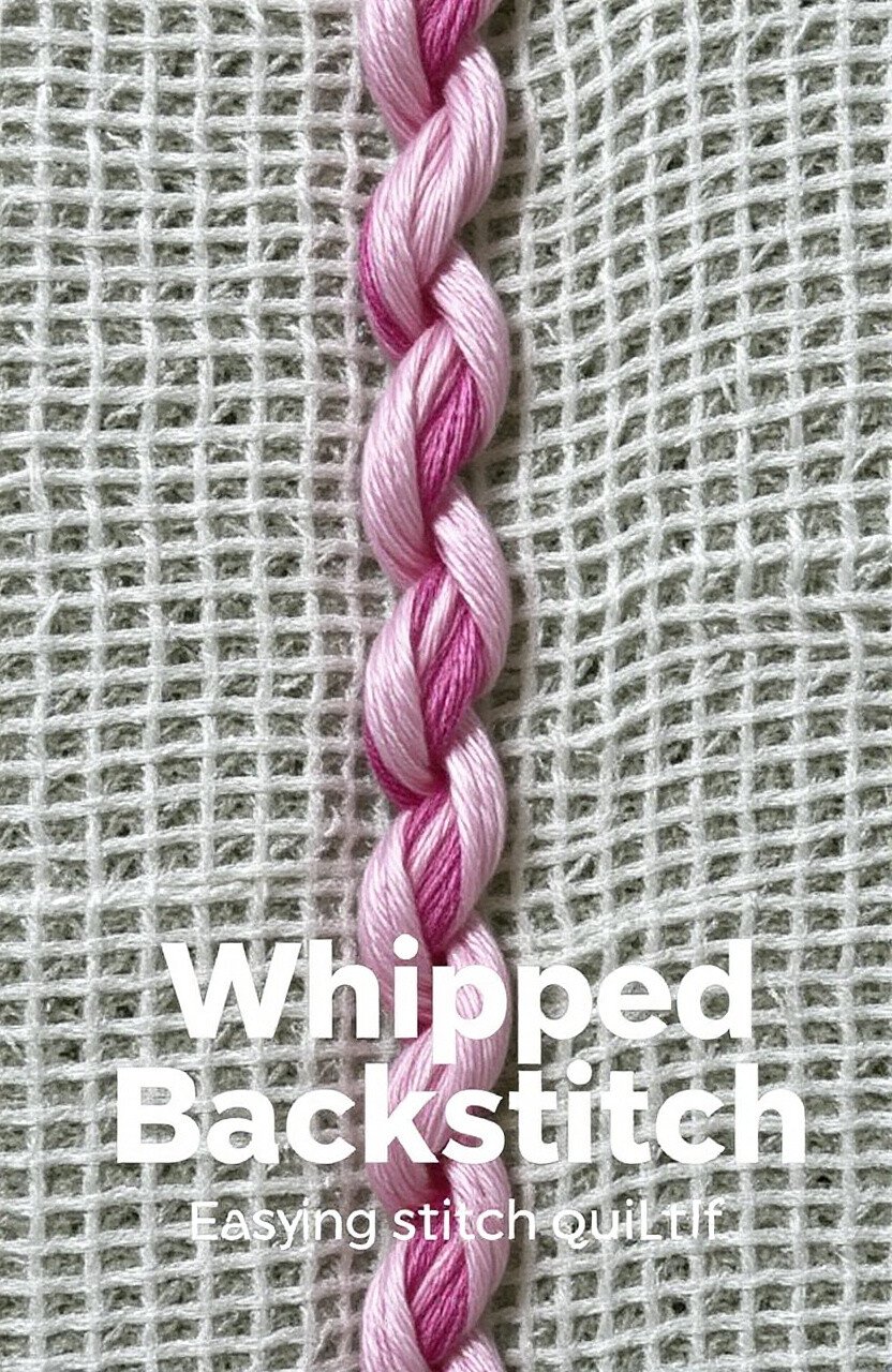 Whipped backstitch looks like a twisted rope. It’s perfect for creating outlines with texture. This stitch gives your quilt a dynamic, textured look.