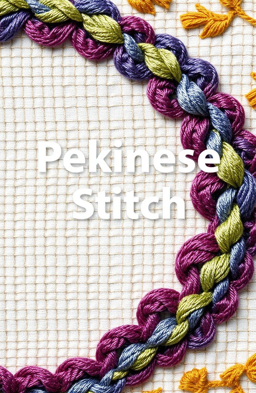 The Pekinese stitch combines a backstitch and a lacing stitch. It adds a rich, braided texture. This stitch gives your quilt an exotic, intricate look.