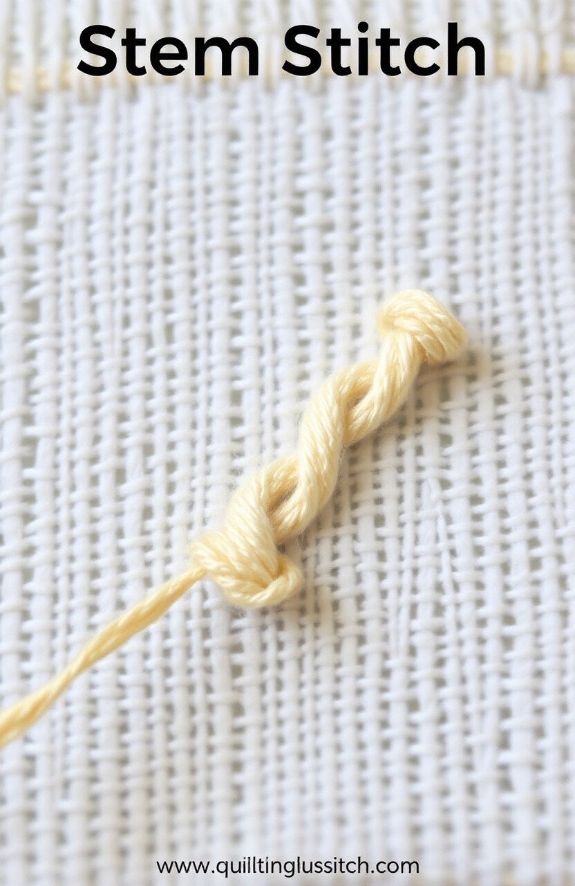 Stem stitches look like twisted ropes, perfect for outlines and stems. They add a delicate, flowing look to your quilt. This stitch is ideal for floral designs.
