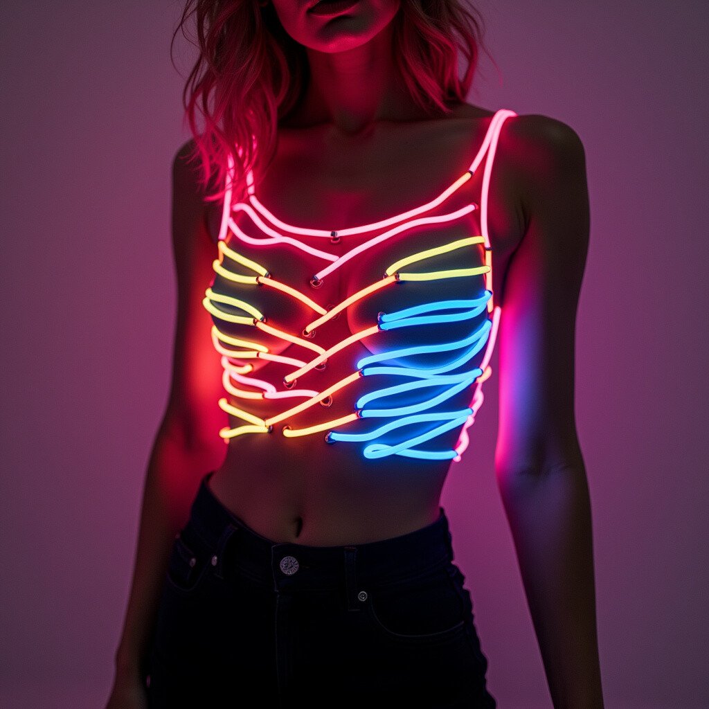 If you want to stand out in a crowd, an electric neon spiral crop top is the way to go. These tops are vibrant and eye-catching, perfect for a night out or a party. The bright colors are sure to add energy to your look.