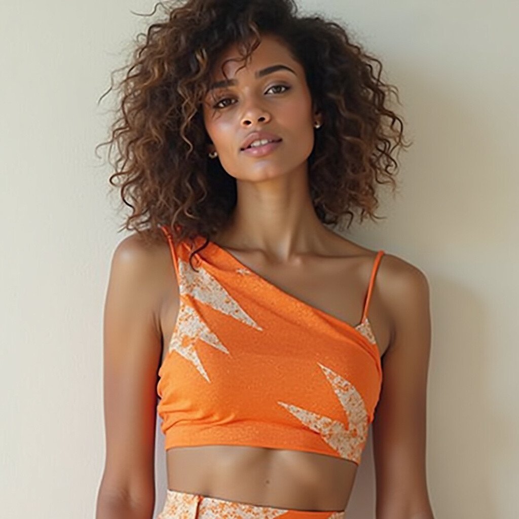 For a bold and modern look, try a color block spiral crop top. These tops feature large blocks of color in a spiral pattern, offering a striking and contemporary style. Perfect for those who love to make a statement with their fashion.
