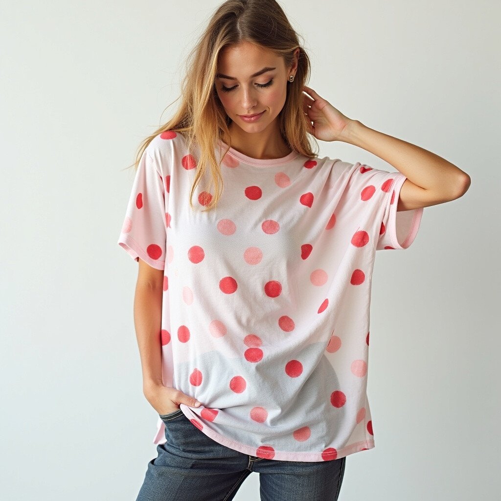 Polka dots are timeless and versatile, ensuring your shirt will remain a favorite in your wardrobe. The cost is low, allowing you to create multiple shirts without a hefty price tag.