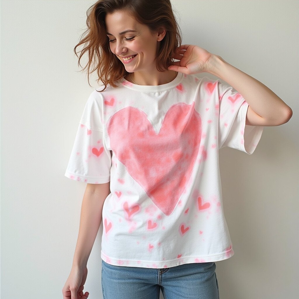 Create heart shapes by folding your shirt and applying bleach in heart patterns. The results are endearing and perfect for any casual outing. This design is simple yet impactful, making it a favorite among DIY lovers.