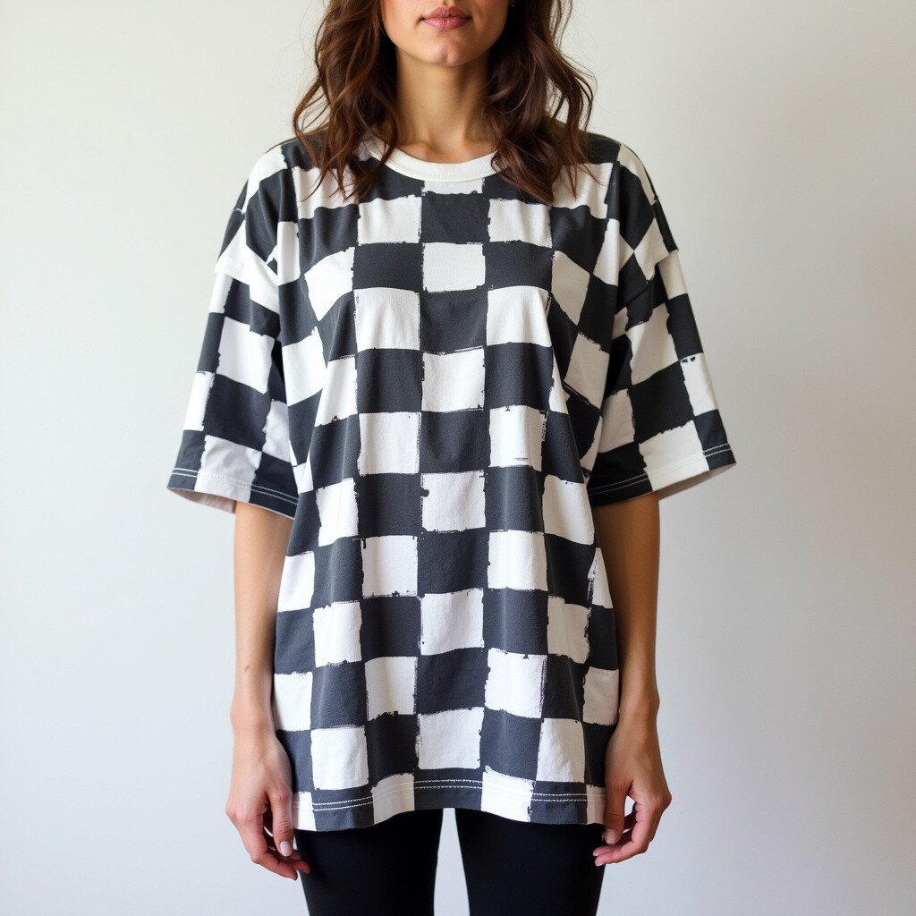 For a bold and graphic look, try a checkerboard pattern. This design is striking and modern, perfect for those who love to make a statement. It’s a fun way to bring a touch of the 80s into your wardrobe.