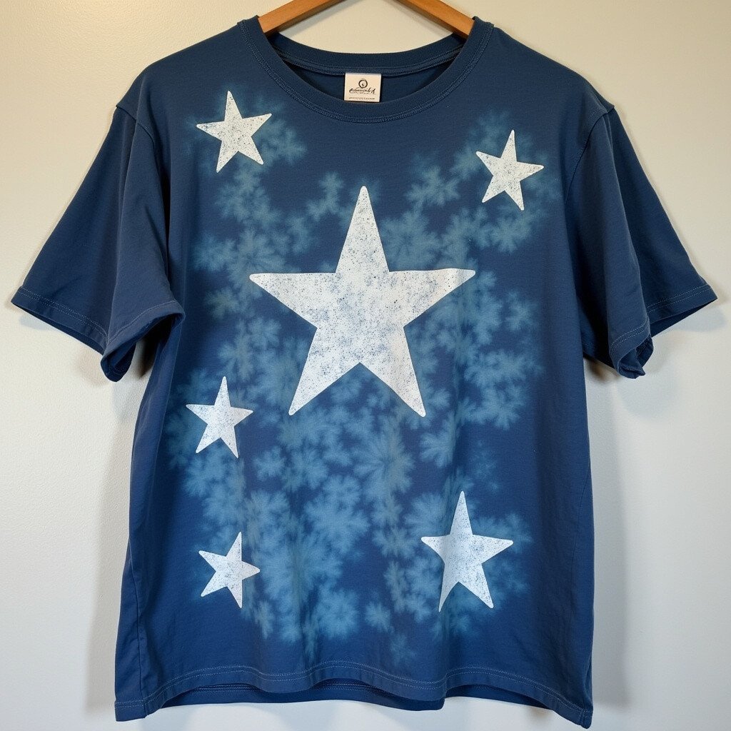 Want a celestial look without the mess? Stenciled stars are the way to go. This method uses star-shaped stencils to create a uniform pattern across your shirt, giving it a magical, night-sky feel.